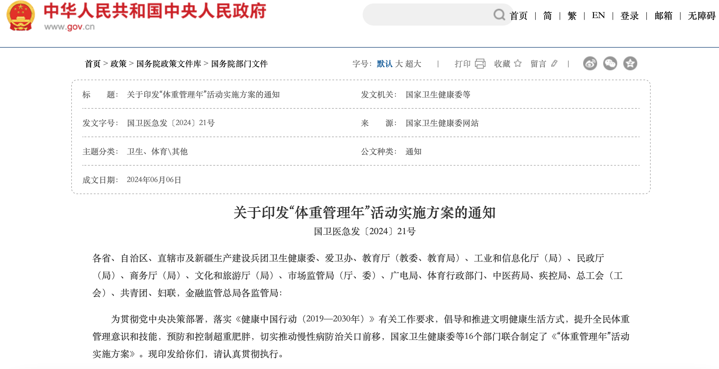 卫健委 “体重管理年” 行动下,体重管理行业迎来新机遇
