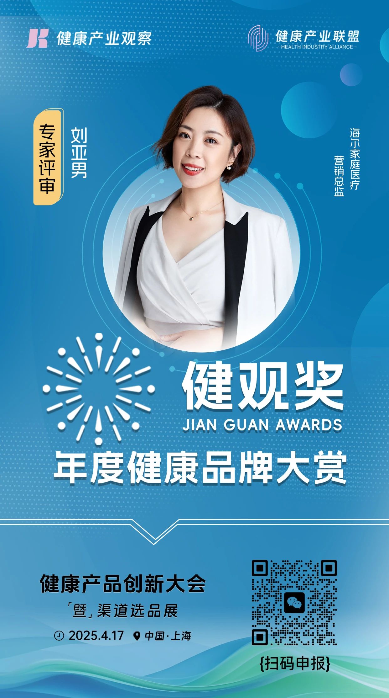 评委嘉宾|海尔家庭医疗营销总监刘亚男加入【健观奖·年度健康品牌大赏】专家评审团