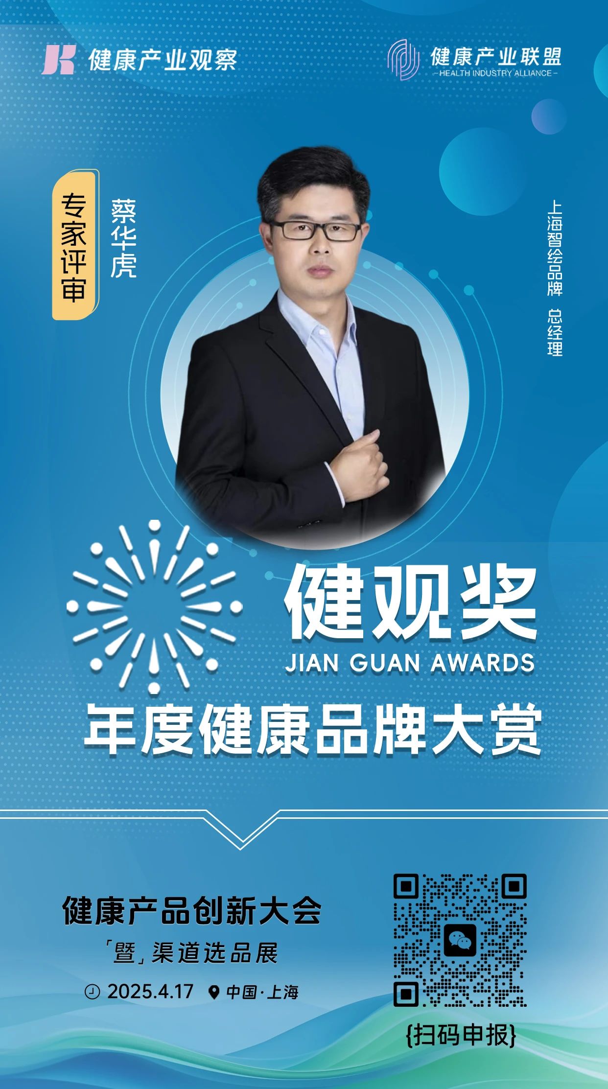 评委嘉宾 | 上海智绘品牌总经理蔡华虎加入【健观奖·年度健康品牌大赏】专家评审团