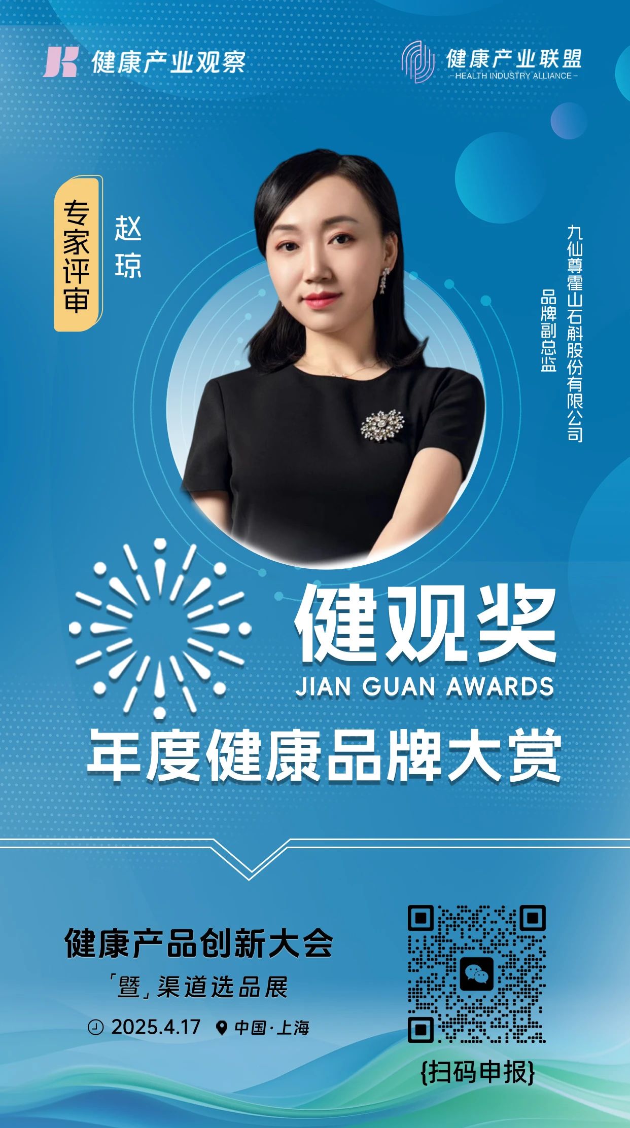 评委嘉宾 | 九仙尊霍山石斛品牌副总监赵琼加入【健观奖·年度健康品牌大赏】专家评审团