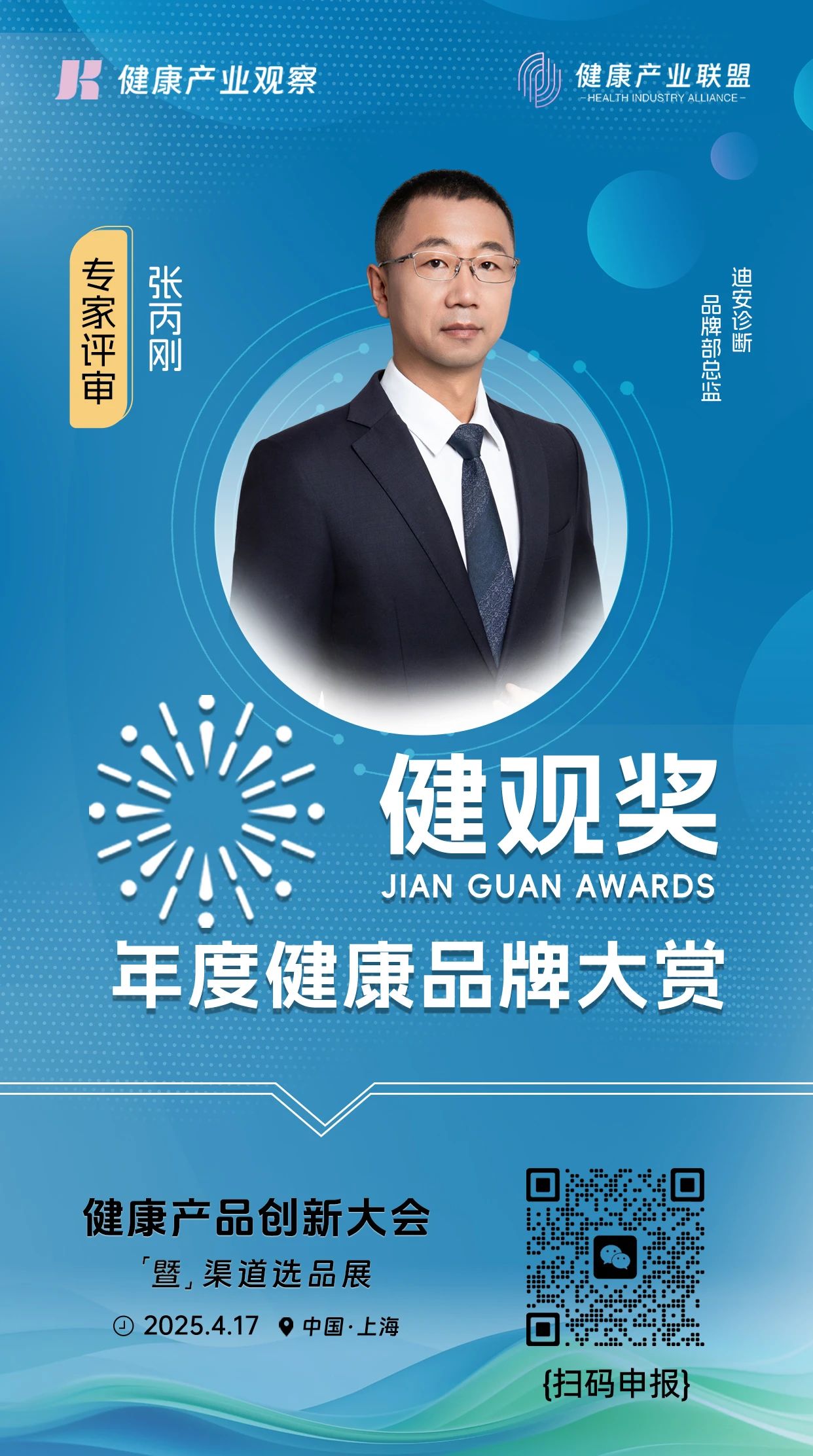 评委嘉宾|迪安诊断品牌部总监张丙刚加入【健观奖·年度健康品牌大赏】专家评审团