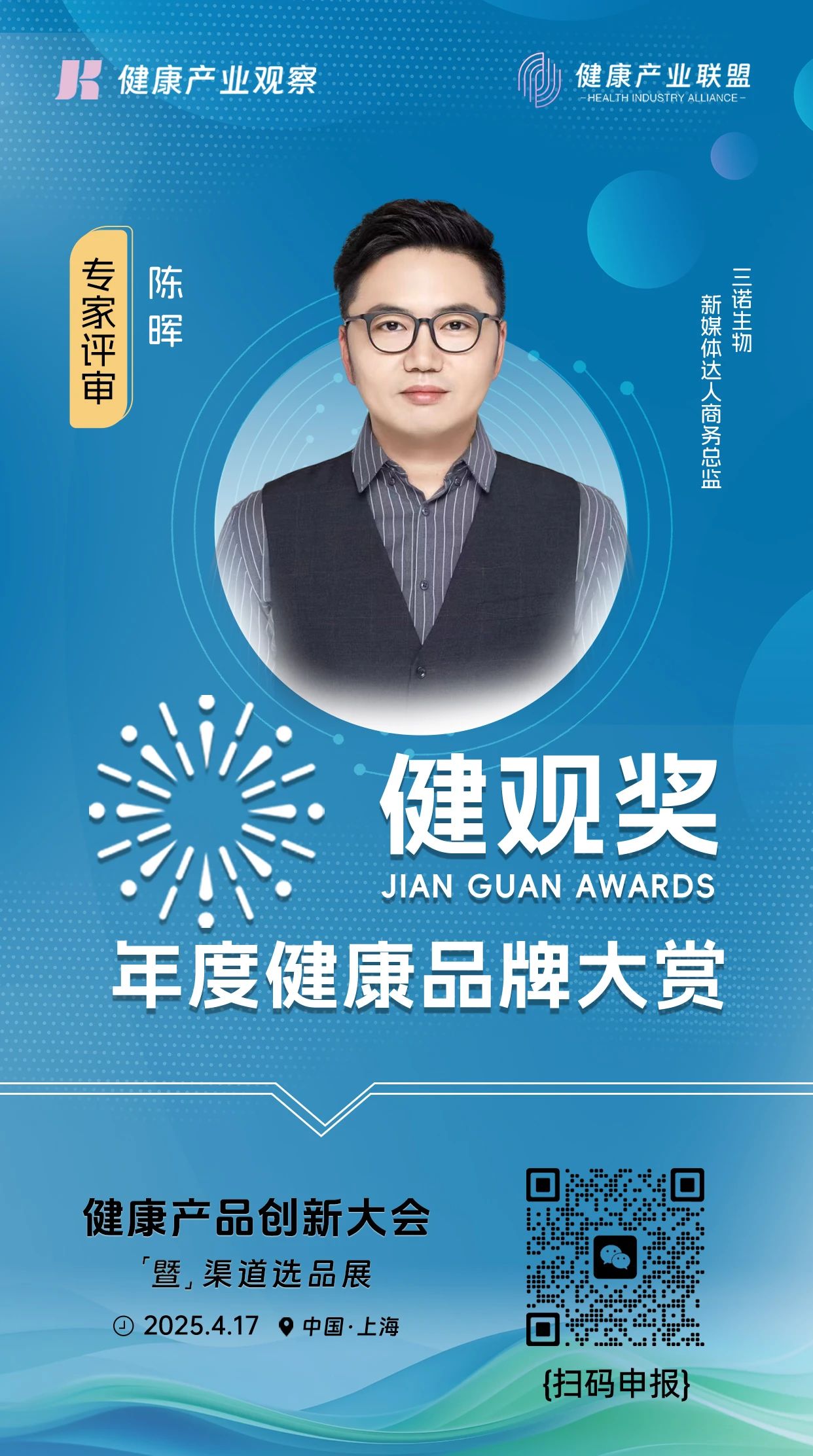 评委嘉宾|三诺生物新媒体达人商务总监陈晖加入【健观奖·年度健康品牌大赏】专家评审团