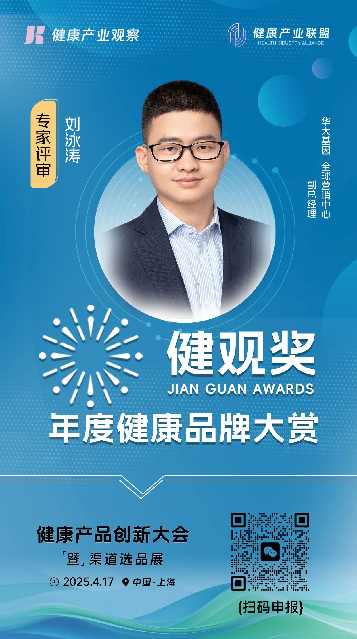 评委嘉宾|华大基因全球营销中心副总经理刘泳涛加入【健观奖·年度健康品牌大赏】专家评审团
