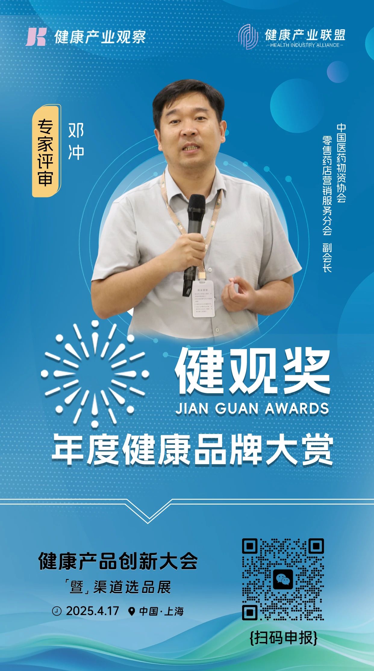 评委嘉宾|中国医药物资协会、零售药店营销服务分会副会长邓冲加入【健观奖·年度健康品牌大赏】专家评审团