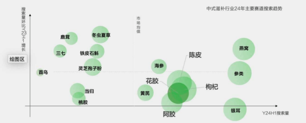 中式滋补需求更细分:补气血仍是核心,但 “祛湿气、提神” 增速显著。南方用户搜 “祛湿茶”,北方用户找 “银耳羹食谱”,职场人查 “参类提神攻略”—— 这些 “小蓝海”,新锐品牌精准切入就能快速破圈。
