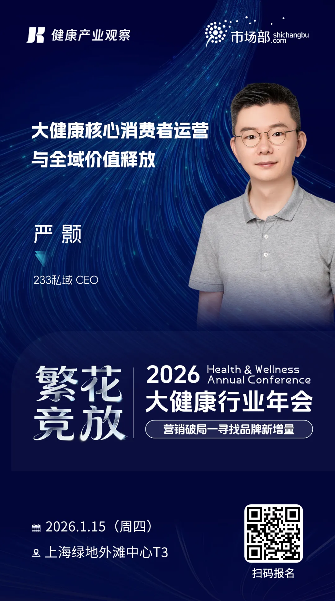 目前,233品牌私域CEO严颢正式确认担任本次【2026大健康行业年会】分享嘉宾,分享的主题为《大健康核心消费者运营与全域价值释放》。