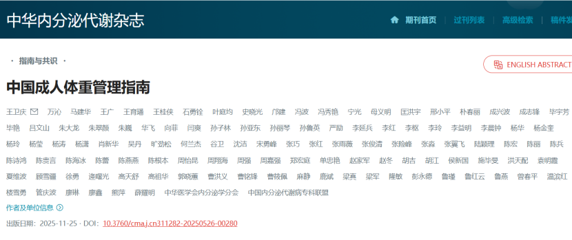近日,《中国成人体重管理指南(2025)》(以下简称《指南》)在《中华内分泌代谢杂志》上正式发布,系统梳理了我国肥胖的流行现状,用最新指标重新定义了国人的体型健康标准。