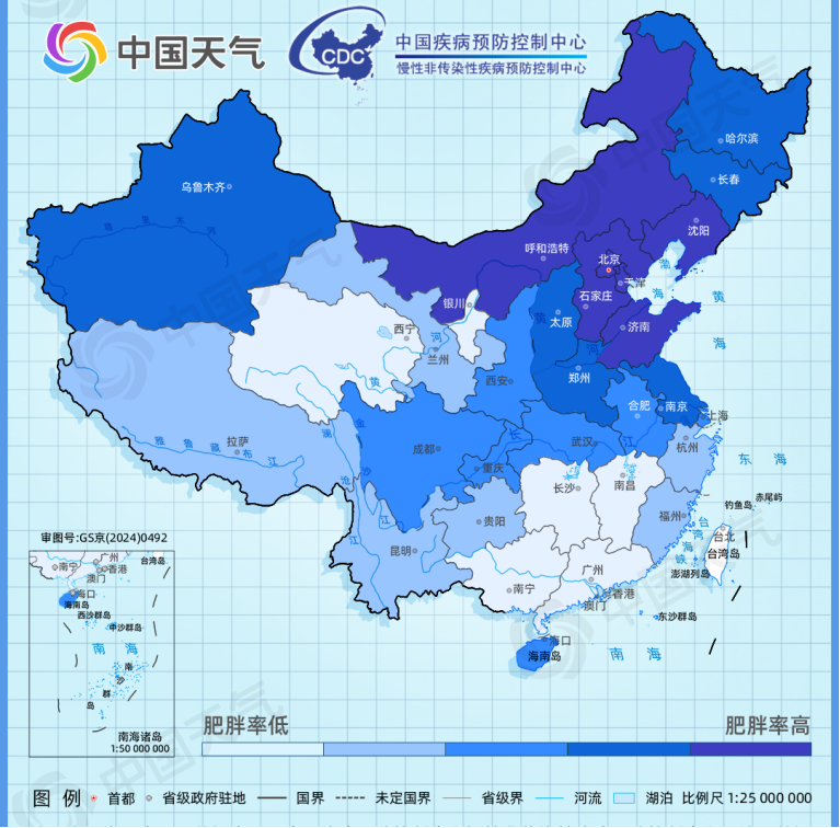 快速增长与地域分化:我国成年人超重率34.3%、肥胖率16.4%,呈现“北方高于南方”(可能与高盐高脂的炖菜面食习惯相关)、“城市高于农村但农村增速更快”的地域特征。